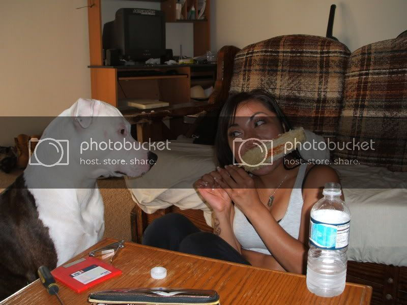 P.S. That lovely specimen of pit-bull beauty is unfortunately not technically mine 😦 But I was the mommy. I was there when he bought her, drove an hour just to give her a pillow while she was at a kennel, took her to get her first shots, walked her in the middle of the night in the rain so she wouldn’t shit on herself, gave her baths in which I got more soaked than she did, cleaned her throw-up everytime she yacked in my car, told her stories, sang her songs, brushed her teeth, kissed her, hugged her, and loved her. So I can’t help but refer to her as “mine.”